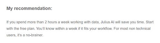 For business teams that want to get answers from data without writing code or waiting on a data team, Julius is worth trying. You can bring your own data or start with a question and have Julius find and compile the data you need.