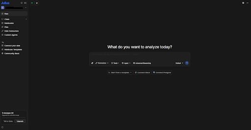 We designed Julius for business teams that spend more time waiting on answers than acting on them. You can connect sources like Postgres, Snowflake, and BigQuery and ask questions in plain English to get charts or summaries without writing code. If you don't have a dataset ready, you can start from a question and work with public or financial data sourced inside the platform.