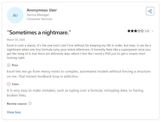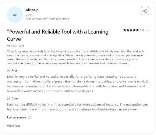 Wide compatibility with other tools means your financial data can move in and out of Excel without significant reformatting | Advanced features have a real learning curve, and navigation can feel overwhelming for less experienced users |