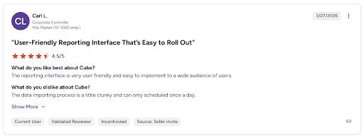 What it does: Cube is a financial planning and analysis (FP&A) platform that layers budgeting, forecasting, and reporting on top of Excel and Google Sheets.