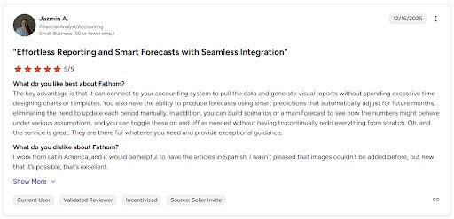 What it does: Fathom is a financial reporting and analysis platform that connects to your accounting software and turns your financial data into KPI dashboards, forecasts, and visual reports.